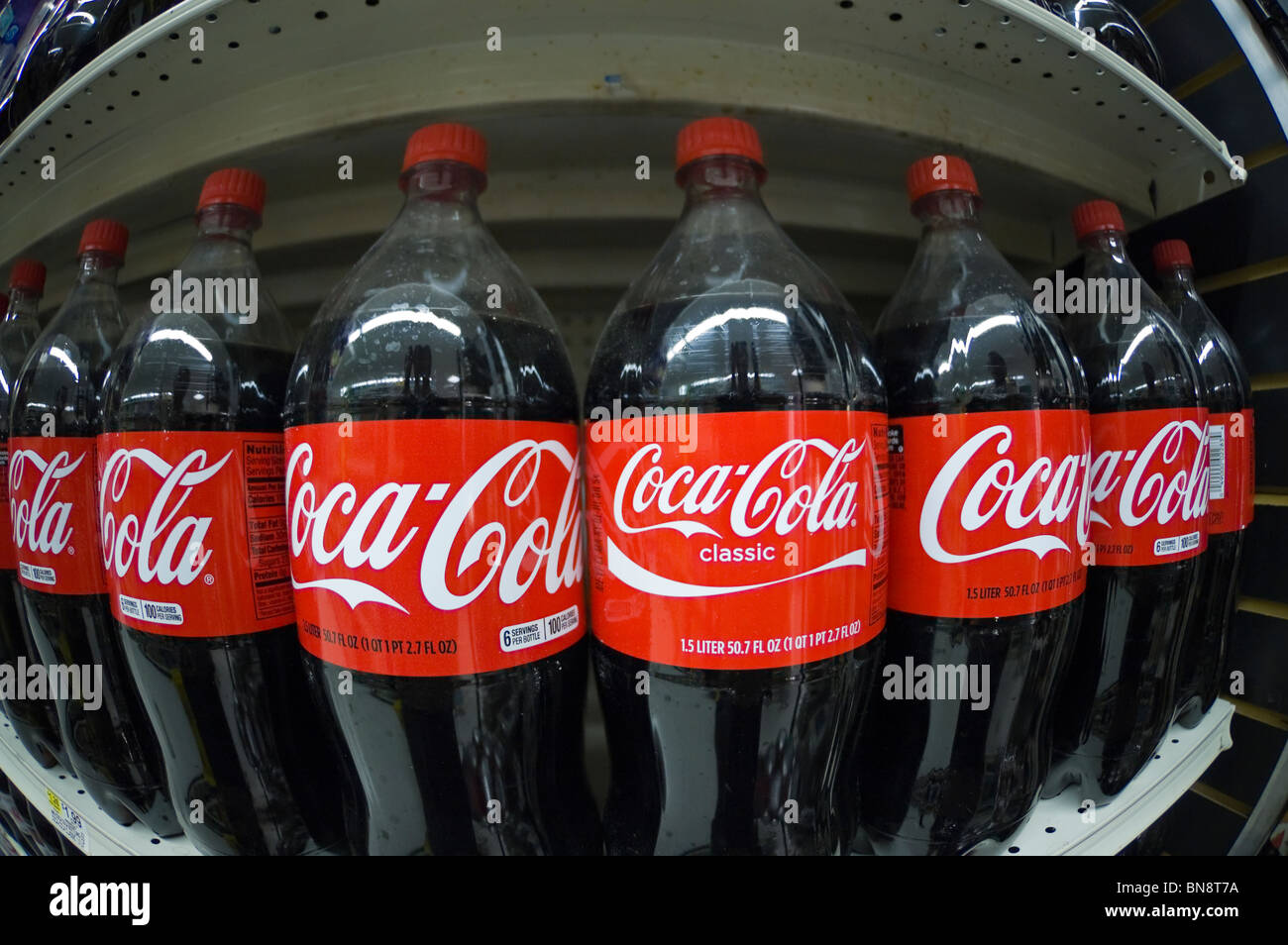 1 5 Liter Kunststoff Flaschen Von Coca Cola Sind Auf Einem Supermarktregal In New York Gesehen Stockfotografie Alamy